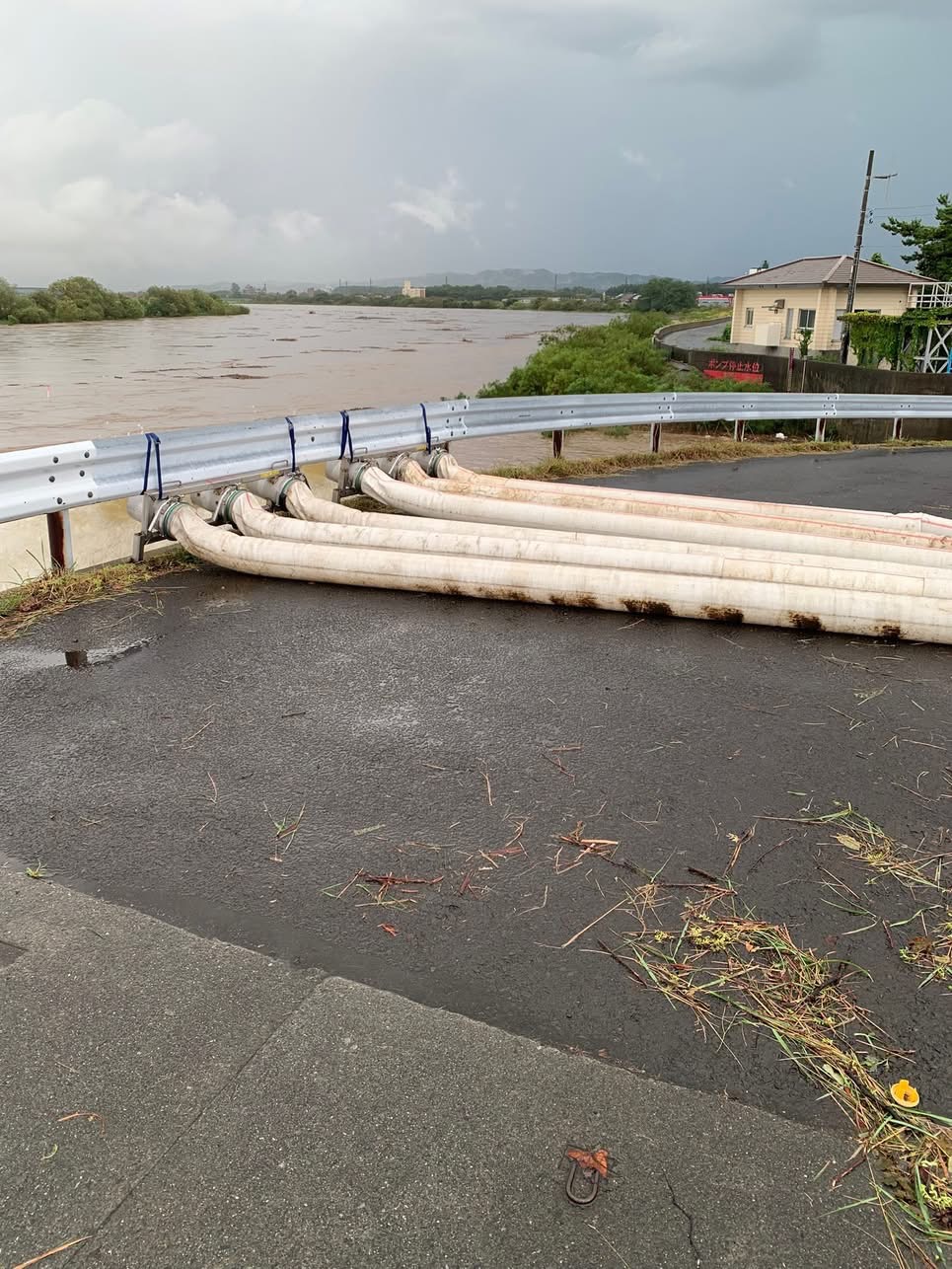水害時の米代川への悪戸川排水状況